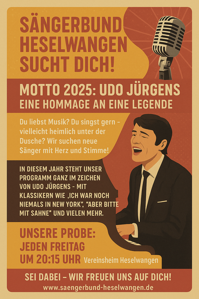 Wir sind ein reiner Männerchor. Unser Repertoire beinhaltet klassische Stücke, sakrale Gesänge, Volkslieder, Schlager und auch moderne Pop und Rockmusik. Unser Probelokal befindet sich im Vereinsheim in Heselwangen. Geprobt wird jeden Freitag von 20:15 Uhr bis 21:45 Uhr. In Ausnahmefällen proben wir auch in der Alten Schule in der Dorfmitte (Ortschaftsverwaltung).